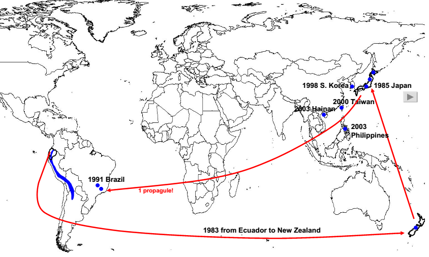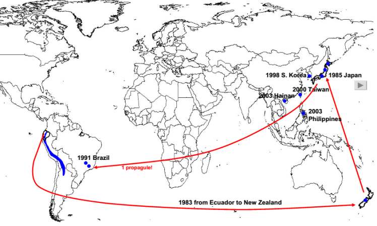 Primeiro foi introduzido na Nova Zelândia em 1983 e daqui para o Japão em 1985, e para o Brasil em 1991.